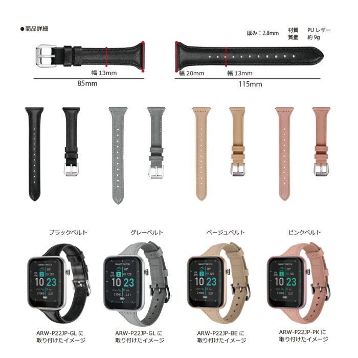 【オプション】交換用ベルト 【PUレザー】2024新色追加 エアリア ARW-P22JP スマートウォッチ ラベンダー