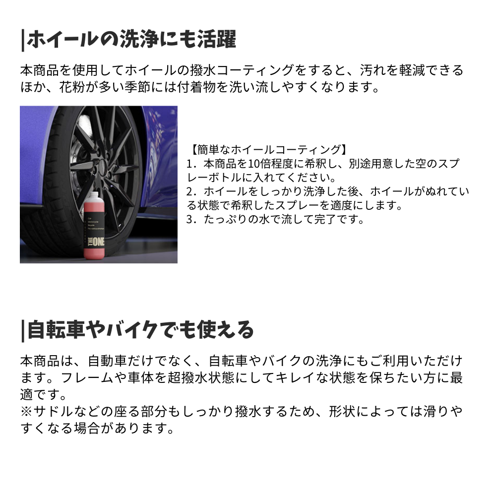 本商品は、自動車だけでなく、自転車やバイクの洗浄にもご利用いただけます。