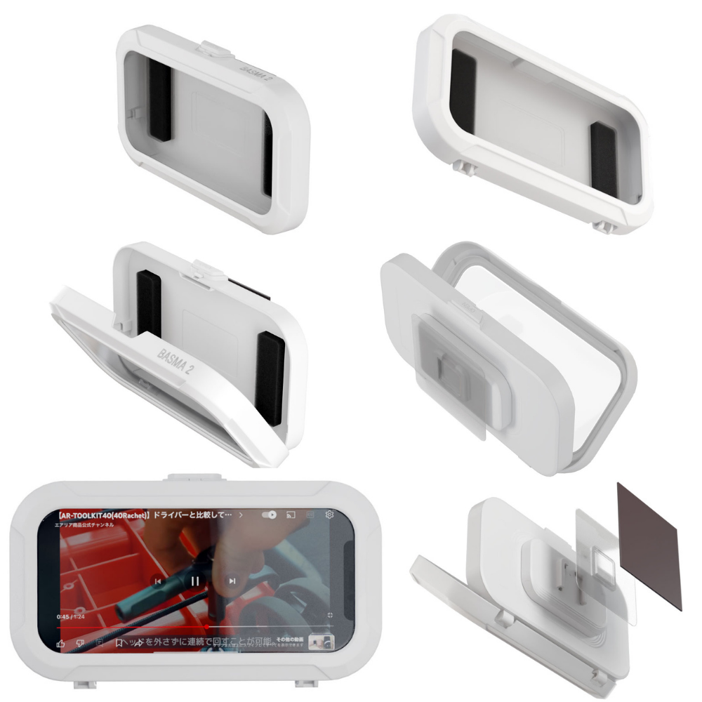 エアリア BASMA2 バスマ 防滴 スマホ ケース タッチパネル 操作 お風呂 浴室 バスタイム 動画 壁掛け フック 固定 縦横自由 グッズ ホワイト 防水ケース 半身浴 Youtube iphone 料理 レシピ 汚れ防止 スマートフォン マグネット 磁石 動画鑑賞 シンプル