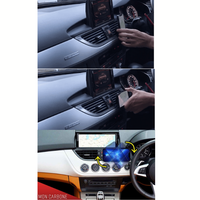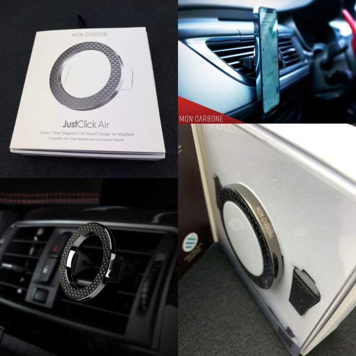 国内正規代理店 Moncarbone JustClickAir MagSafe対応 マグネット 吸着式 マウンター iPhone13 12 車載 エアコンフィン ダッシュボード 縦置き 横置き ワンタッチ ミリタリー カーボン 高級車 車載ホルダー monCarbone