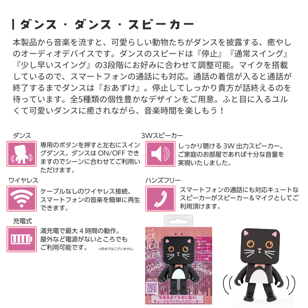 音楽を聴く時間をもっと楽しくする、新しい形のワイヤレススピーカー『ダンス・ダンス・スピーカー/MS-DDS』本製品は、音楽に合わせて可愛らしい動物たちがダンスを披露する、癒やしのオーディオデバイスです。