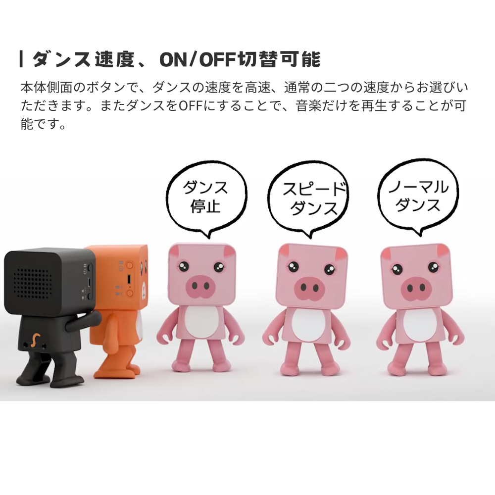 本体側面のボタンで、ダンスの速度を高速、通常の二つの速度からお選びいただきます。またダンスをOFFにすることで、音楽だけを再生することが可能です。