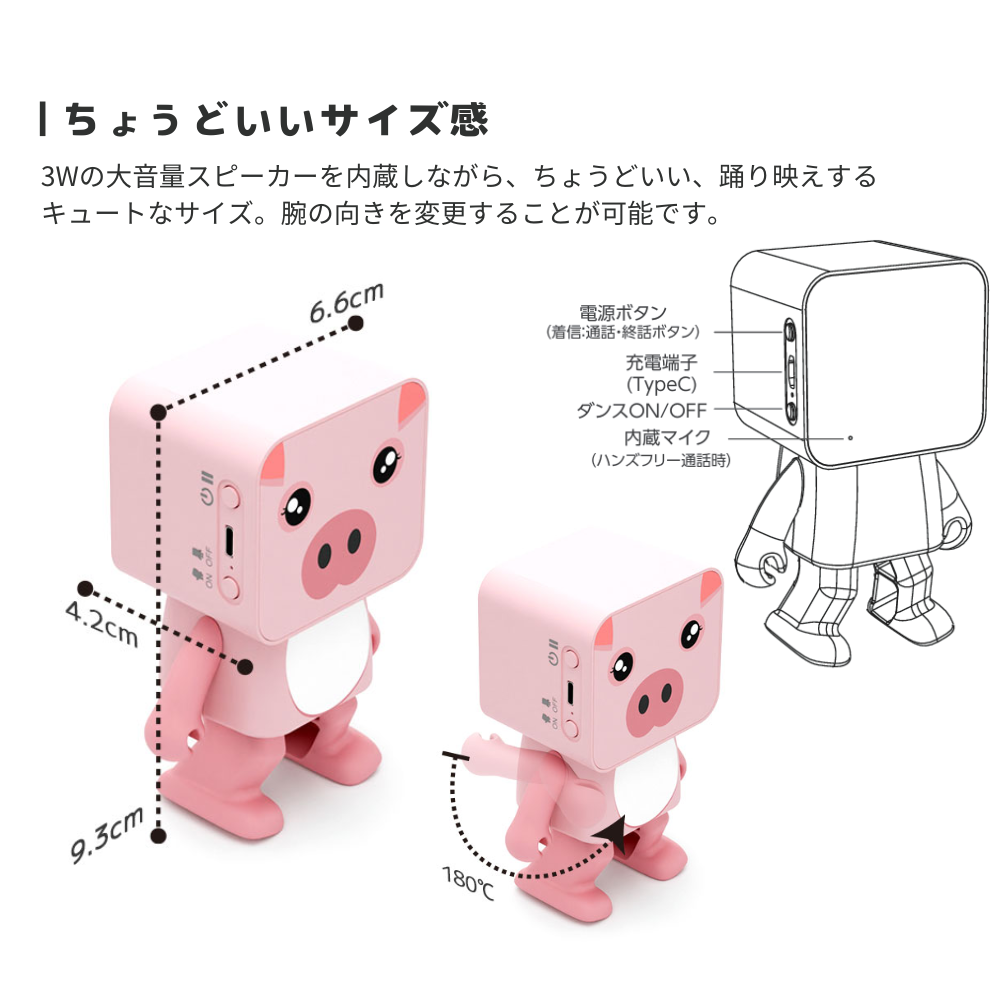 ダンスのスピードは『停止』『通常スイング』『少し早いスイング』の3段階にお好みに合わせて調整可能。マイクを搭載しているので、スマートフォンの通話にも対応。通話の着信が入ると通話が終了するまでダンスは『おあずけ』。停止してしっかり貴方が話終えるのを待っています。