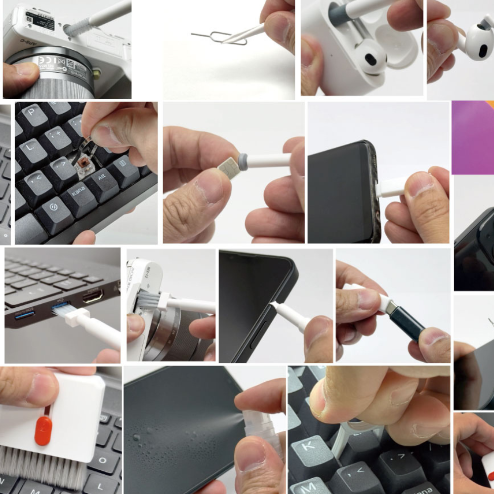 SIMピンlスイッチプラーlキーキャッププラーlイヤホンブラシ/ペンクリーナーlフックヘッドl隙間用ブラシ1l隙間用ブラシ2lソフトハケlフチクリーナーlカーブブラシl隙間ブラシ3lハードハケlTypeC端子クリーナーlライトニング端子クリーナーlスエードチップlソフトブラシlフチクリーナーlスマートフォンスピーカークリーナーlスティッククリーナーlツールをロング化する棒lタッチペンlピンセットlボトルlフランネルクロス/ブラシ
