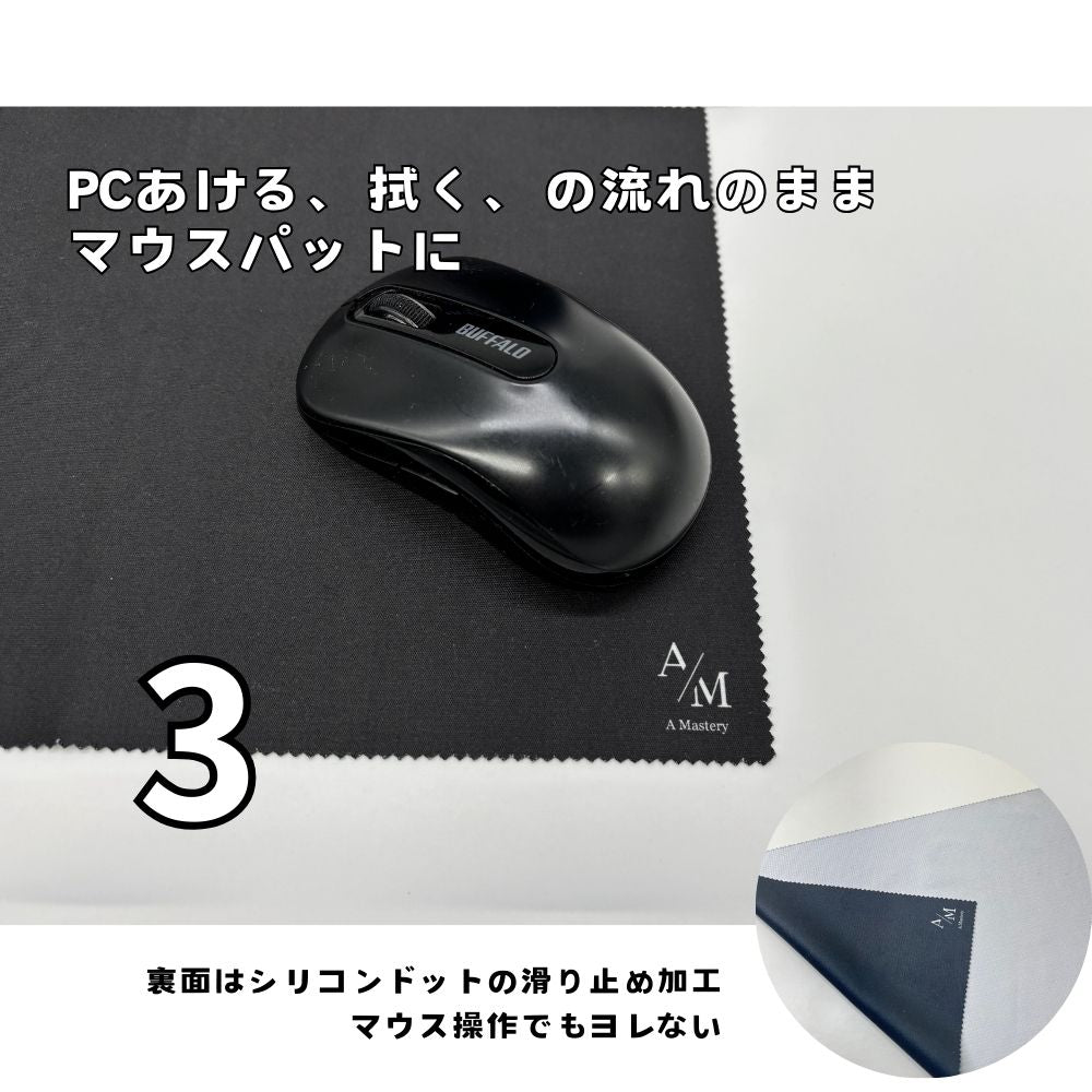 【direct!choice】A Mastery エーマスタリー モニターガード 挟むだけで傷防止 ノートパソコンに挟むだけ。画面を「守る」×「磨く」×「使う」3役こなすモニターガード 13.3 14インチ 画面保護クロス キーボード跡 防止 液晶保護 クリーニングクロス マウスパッド 汚れ 防止 OEKO-TEX
