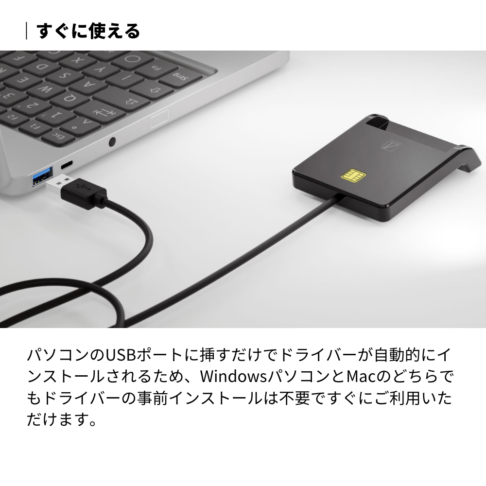 エアリア マイナンバーカード対応 ICカードリーダー【 SD-MYC01-B 】横置き USB TypeC 接続 インストール不要 そのまま使える マイナンバーカードリーダー マイナポイント 申請 確定申告 e-Tax e-LTAX ふるさと納税 電子申告 パソコン Windows Mac 接触式