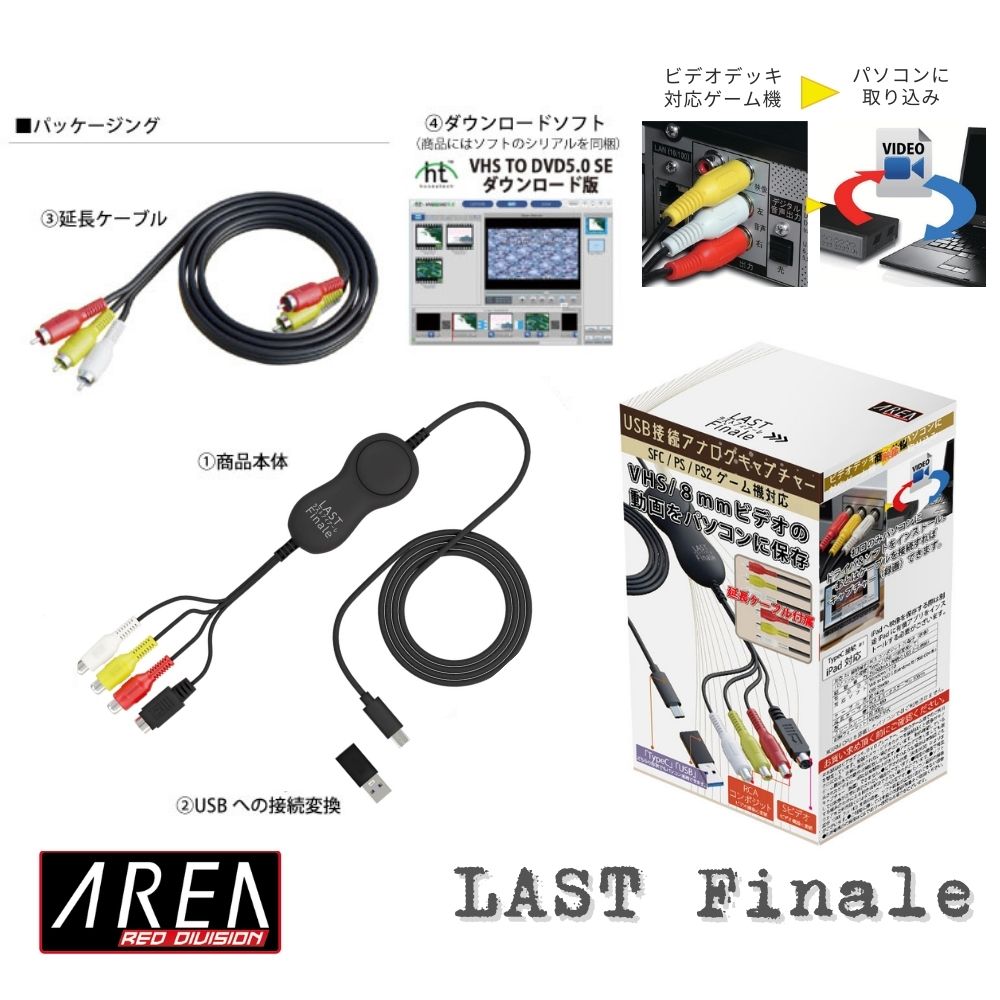 2月18日発売【メーカー直営店】エアリア LAST Finale ファイナルフィナーレ LAST FINALE ビデオキャプチャー USB Type-C / A 両対応 VHS 8mm ビデオ ダビング デジタル化 レトロゲーム SFC PS2 録画 編集 iPad Windows11 対応 赤白黄 S端子 延長ケーブル付 SD-U2CUP-C FINAL CALL / SD-U2CUP-B ファイナルコール 後継