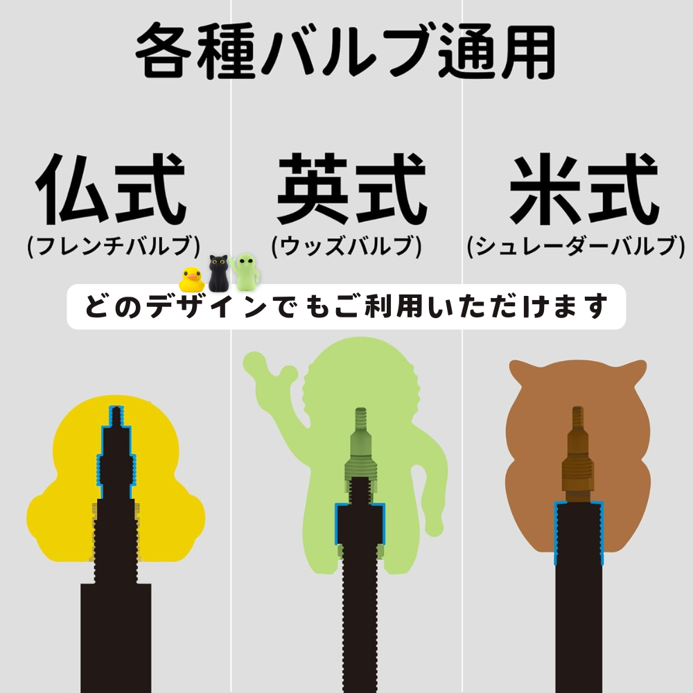 Bone エアバルブ キャップ シリコン タイヤ 空気 キャップ ロードバイク 自転車 バルブキャップ 車 タイヤ キャップ 自転車 ゴム栓 虫ゴム 米式 仏式 英式 フレンチ バルブ キャップ キャラクター ダック キャット エイリアン 猫 面白い かわいい Character Valve Cap