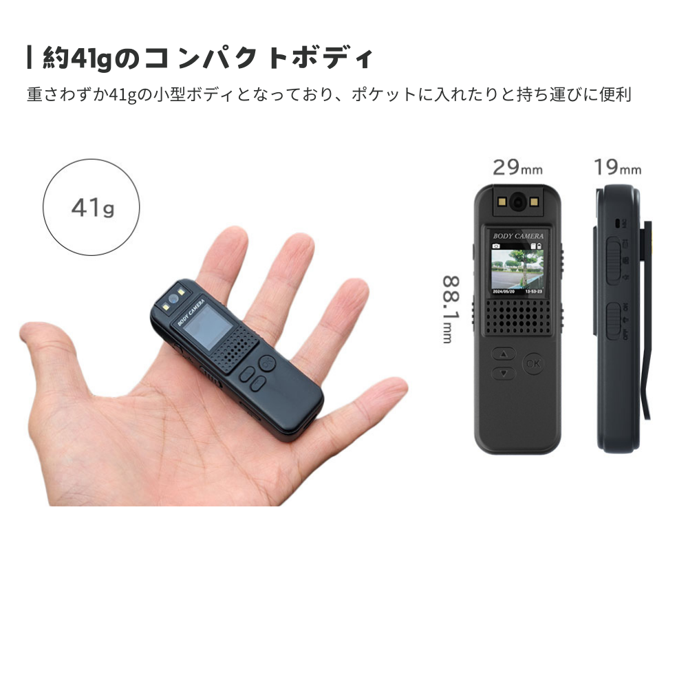 本製品はこれだけのマルチ機能でありながら、重さわずか41gの小型ボディとなっており、ポケットに入れたりと持ち運びに大変便利です。